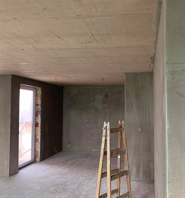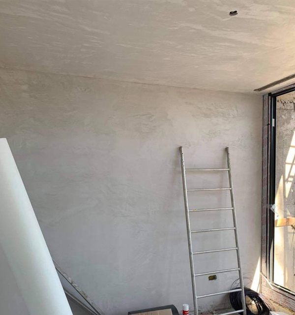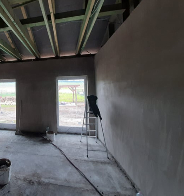 Glettelés két rétegben, csiszolással + festés két rétegben fehér színben